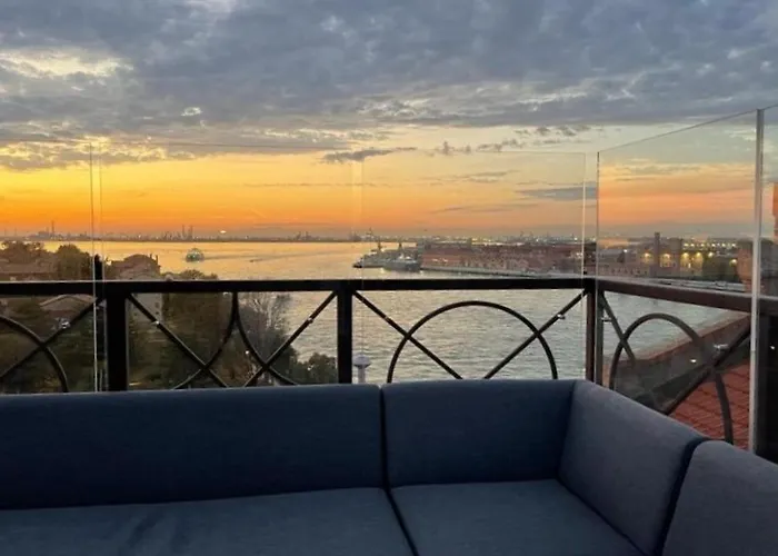 Disfruta de tus vacaciones en Venecia en este apartamento de 134 m², The Venice Penthouse And Rooftop-Terrace At Molino Stucky. Ideal para quienes buscan una experiencia auténtica, está situado a 19 minutos a pie del Puente de los Descalzos y a tan solo 1 km del Palacio Pesaro.